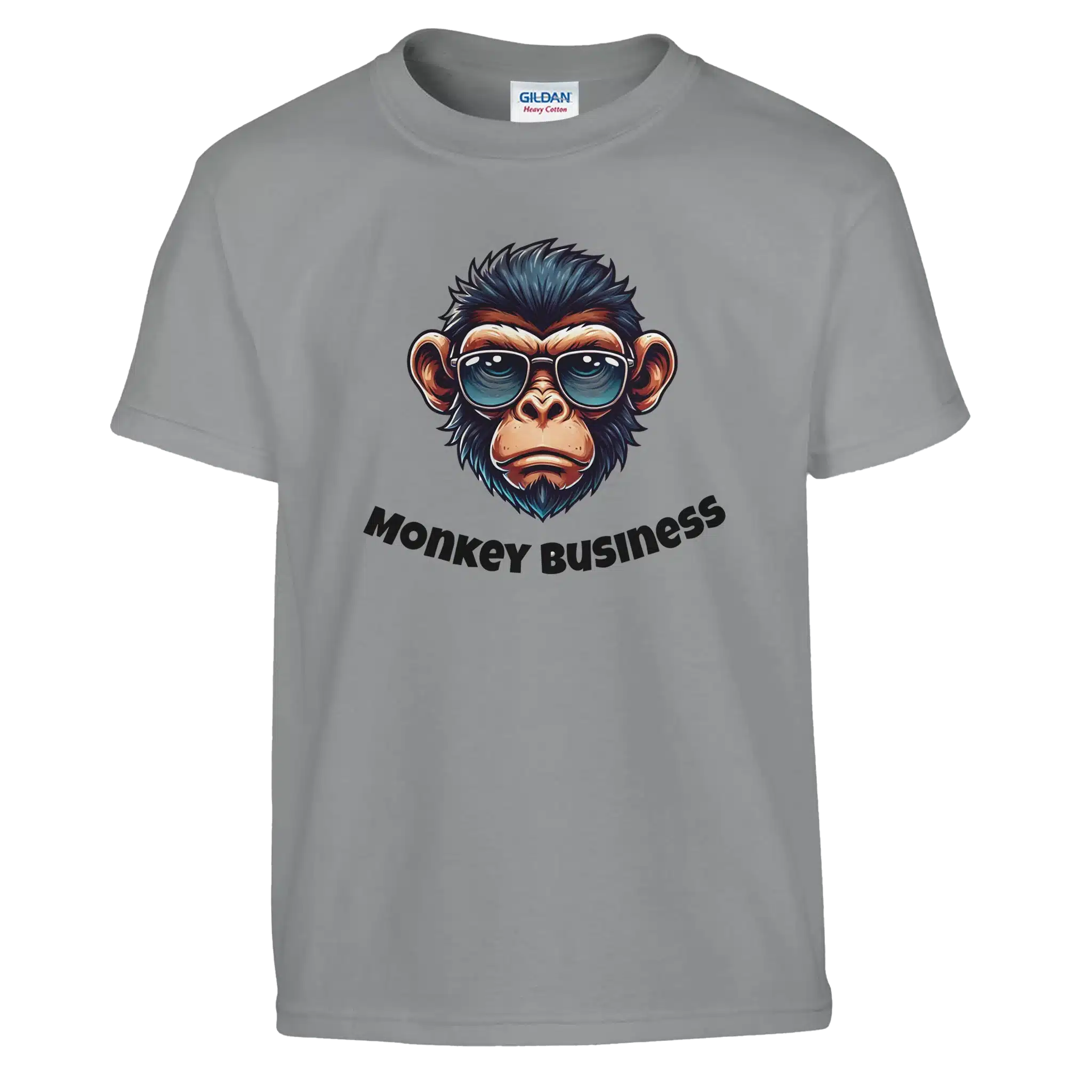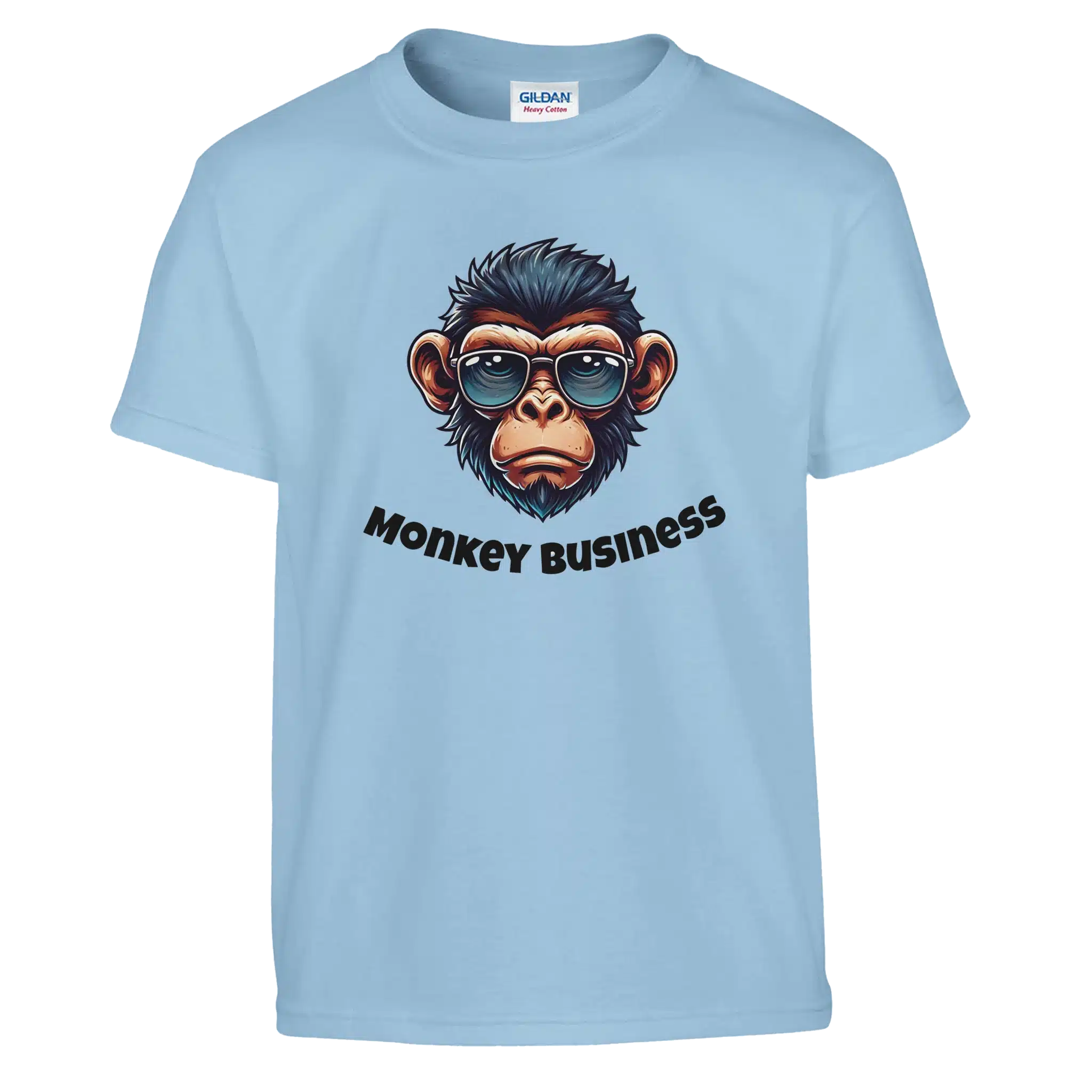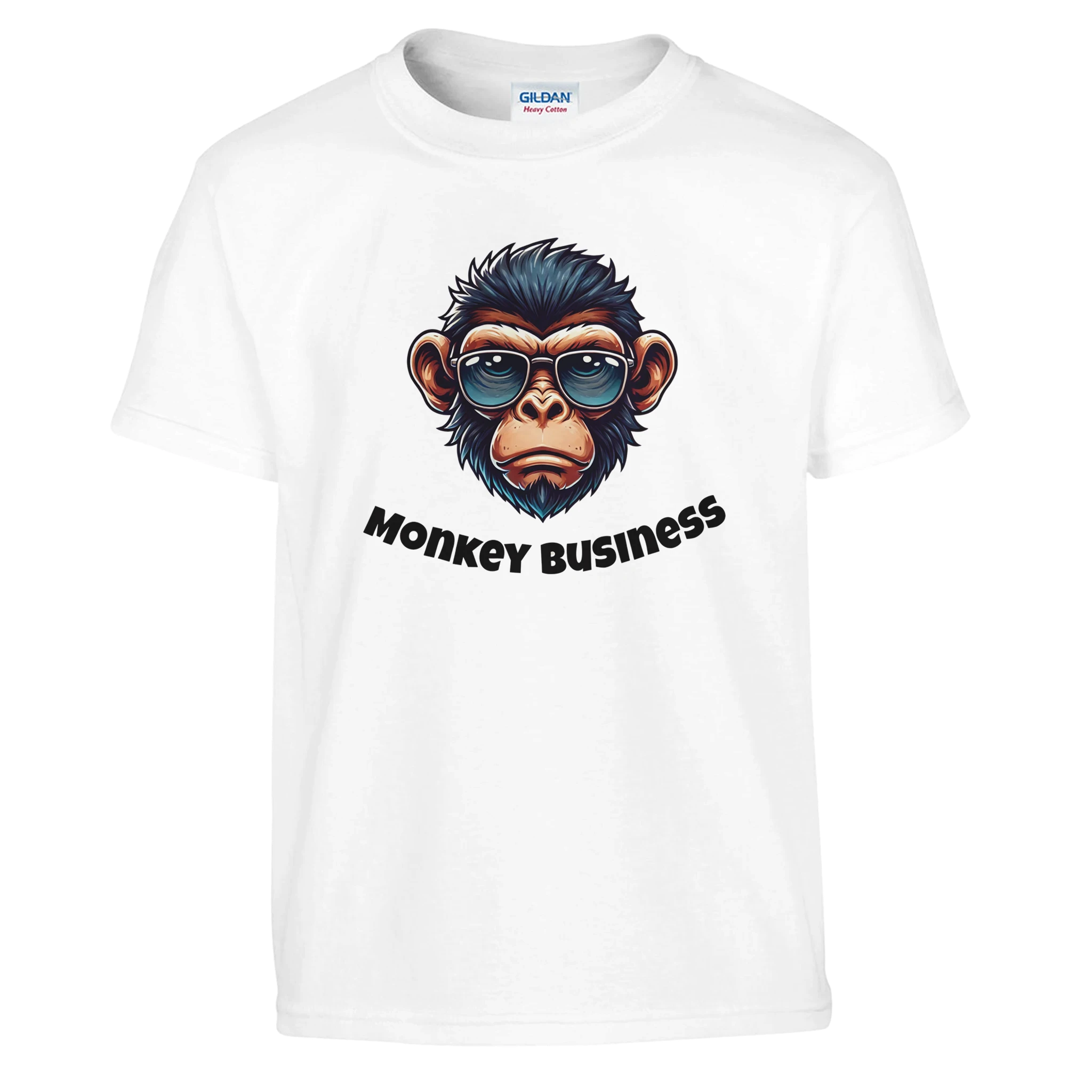 - Step up your style game with this eye-catching "Monkey Business" T-shirt. Featuring a sleek, illustrated monkey sporting a pair of shades, this design captures a perfect mix of laid-back vibes and playful attitude. The bold lettering underneath adds a touch of fun, making it the ultimate conversation starter.